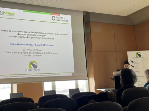 Communication orale de Nidia Alvarez-Rueda. Caractérisation de nouvelles cibles thérapeutiques en mycologie médicale dans un contexte émergent de la résistance d’origine environnementale. Journée Biogenouest. 28 mars 2024. Roscoff, France.